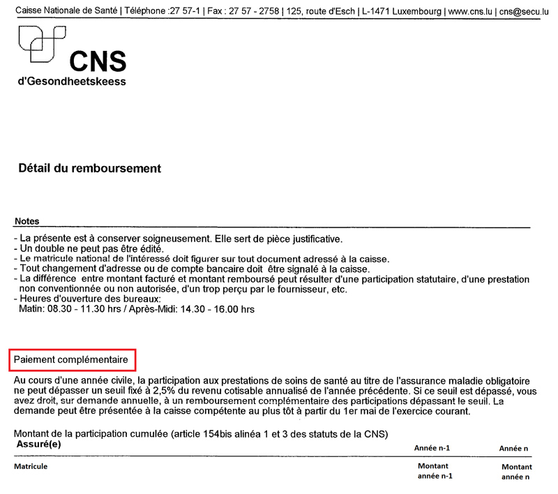 Paiement Complementaire Assure Cns Luxembourg